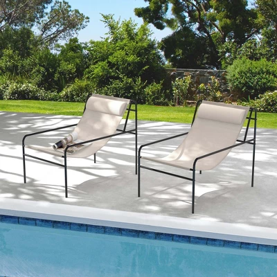 This patio sling chair offers unparalleled comfort with its unique design that allows for deep seating, ensuring maximum coziness. Complete with a detachable headrest pillow filled with soft and elastic sponge, this chair provides an added level of relaxation. The hook and loop fastener, which is one of the thoughtful details, allows for easy attachment and detachment of the pillow. Crafted with premium seat fabric that is breathable and quick-drying, this chair delivers a cool sitting experience while requiring minimal maintenance. The reinforced structure, built with super sturdy metal pipes and a stable triangle frame, provides robust support of up to 350 lbs. With its modern and minimalist style, this versatile sling chair complements various indoor and outdoor settings, making it an ideal choice for the living room, front porch, balcony, and more.
