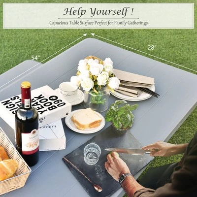 Outdoor table and bench sets are always in a separated design, taking up a lot of time and energy moving all part to outdoors. However, our integrated picnic table set is a great solution for a four-people party or a family gathering!