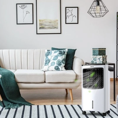 Our indoor portable evaporative air cooler is multifunctional. It distributes cool air through the honeycomb cooling media while the dust filter cleanses the air. Its non-compressor system cools naturally, efficiently and inexpensively without power-hungry components. This evaporative air cooler, humidifier, and fan is versatile, lightweight and economical. It can also be used as a air purifier because of its anion generator. The remote control allows you to easily change settings. And this air cooler could easily rolls from room to room for use anywhere in your house or office.