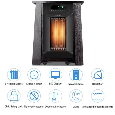 Take the chill out of the air in your home and lower heating bills in the process with this digital quartz infrared heater. This heater features 8 of our metal wrapped quartz infrared elements, oscillation function, has a washable air filter and uses up to 1500-Watts. There are 3 heating settings including an Eco setting that will heat smaller areas to 68 degree F. The heater designs with 4 caster wheels, which makes it easy to carry from room to room to enjoy the benefits of zone heating. This compact heater also includes a remote control providing more portability. Timer settings can be used to turn on or off the heater up to 12 hours ahead. If you consider buying a heater, you’ll be definitely satisfied with it.