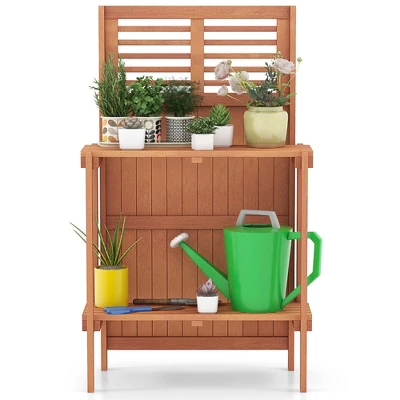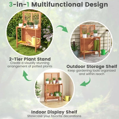 - 3-in-1 Multifunctional Design: This wooden potting bench serves multiple purposes, making it a practical investment for any gardener. Use it as a 2-tier plant stand, creating a visually stunning arrangement of potted plants. It can also function as an outdoor storage shelf or indoor display shelf to keep items well organized.