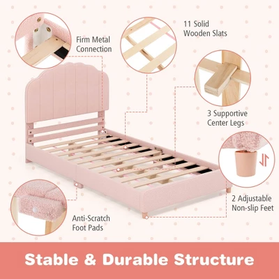 Constructed with soft velvet fabric and high-density sponge, this bed frame offers a cozy environment for bedtime stories and relaxation. Besides, the child-friendly bed height makes it easy for your child to get in and out of bed. The mattress foundation of this bed is reinforced with 11 solid wooden slats and 3 extra supportive center legs, ensuring outstanding weight capacity up to 660 lbs. The upholstered headboard of this bed is height-adjustable, accommodating mattresses of various thicknesses for a customized fit. Headboard adjustable height range: 33.5″-39.5″