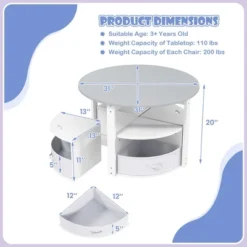 Costway 5 Piece Kids Play Table And Chairs Set Round Nesting Table Toddler Furniture Gray/Natural
