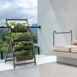 Costway 4 FT 4-Tier Vertical Raised Garden Bed Elevated Planter Box W/4 Container Boxes