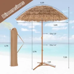 Costway 6.5 FT Hula Thatched Tiki Beach Umbrella 30° Tilting Hawaiian Style Umbrella Natural