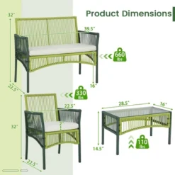 Costway 4 PCS Wicker Rocking Set With Loveseat & Coffee Table Heavy-Duty Metal Frame