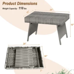 Costway Patio Folding Rattan Wicker Side Table End Coffee Table Portable Garden Mix Grey