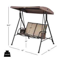 Costway 2-Person Wooden Outdoor Porch Swing Heavy Duty Patio Hanging Bench Chair Brown/White
