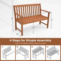 Costway 2-Person Patio Bench With Slatted Backrest And Seat Garden Loveseat Chair Furniture