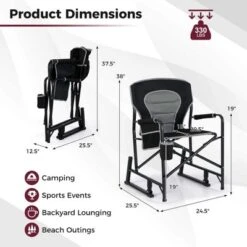 Costway Outdoor Rocker Camping Chair For Adults With Dual Springs Padded Back Black/Red