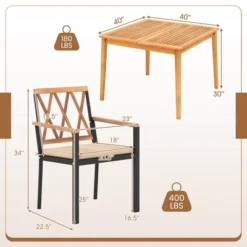 Costway 5 PCS Patio Dining Set With Wood-Plastic Tabletop & Umbrella Hole For Backyard