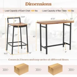 Costway 3PCS Patio Dining Table Set Metal Bar Table & Chairs Set With Cushion