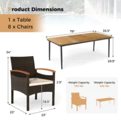 Costway 9 Pieces Outdoor Wicker Dining Set With Acacia Wood Table And 8 Armchairs