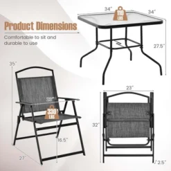 Costway Patio Dining Set For 4 Folding Chairs & Dining Table Set With Umbrella Hole