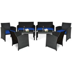 Costway 8PCS Patio Rattan Furniture Conversation Set Cushion Sofa Table Garden TurquoiseNavyBlackRed