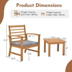 Costway 3 PCS Patio Furniture Set With 2-Tier Coffee Table Acacia Wood Armrests Tabletop