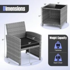 Costway 3 PCS Patio Rattan Furniture Set Coffee Table & 2 Rattan Chair W/Navy Cushions
