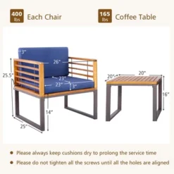 Costway 3pcs Patio Acacia Wood Bistro Conversation Cushioned Chair & Table Set Outdoor