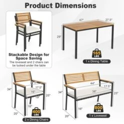 Costway 4 Piece Patio Dining Set Outdoor Wood Dining Furniture With 2 Chairs & 1 Lovesea