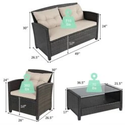 Costway 4PCS Outdoor Patio Rattan Furniture Set Cushioned Sofa Table TurquoiseBlackNavyRed