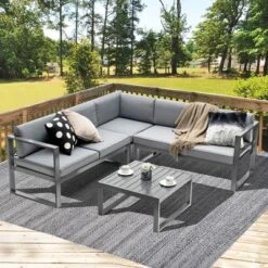 Costway 4PCS Patio Furniture Set Aluminum Frame Loveseat Coffee Table Cushions Deck Grey