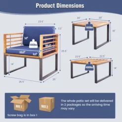 Costway 5pcs Patio Acacia Wood Cushioned Chair Ottoman Table Furniture Set Outdoor Navy