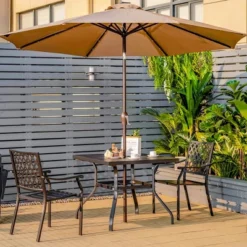 Costway 4-Person 42.5″ Outdoor Dining Table With 1.9″ Umbrella Hole, Adjustable Foot Pads