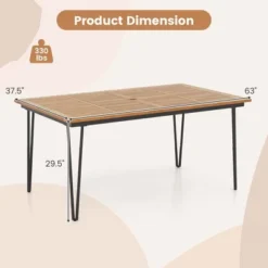 Costway 6-Person Outdoor Acacia Wood Dining Table With 1.96″ Umbrella Hole Rectangular