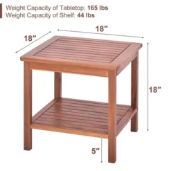 Costway Patio Acacia Wood Side Table 2-Tier Square End Table Porch Poolside Natural