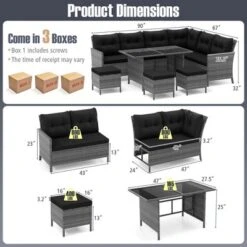 Costway 7 PCS Outdoor Dining Set For 6 With Metal Frame Umbrella Hole For Garden Porch