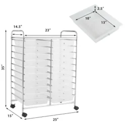 Costway 20 Drawers Rolling Cart Storage Scrapbook Paper Studio Organizer Bins Clear White